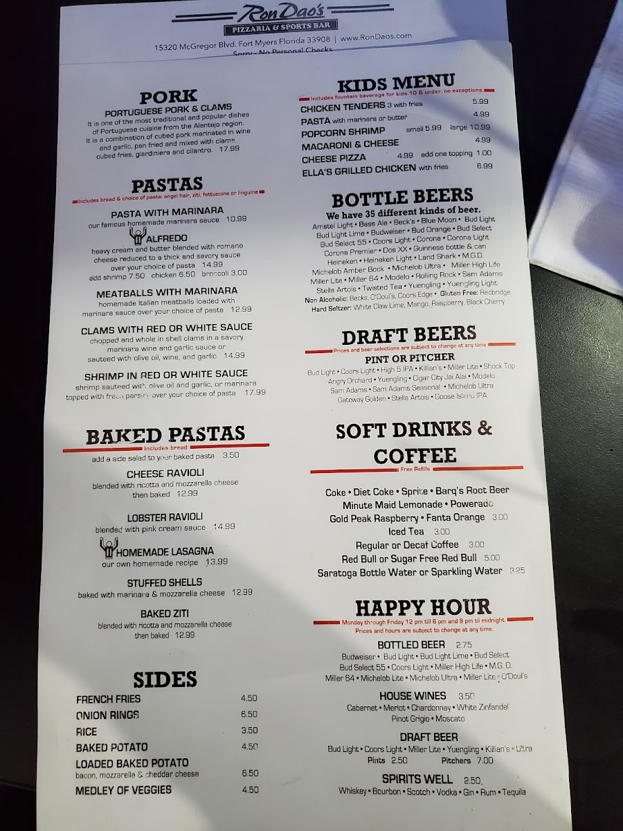 Welcome to RonDao's Pizzeria & Sports Bar, the ultimate destination for pizza lovers and sports fans alike! Nestled at 15320 McGregor Blvd in Fort Myers, this vibrant eatery brings together a lively atmosphere and a delightful menu that is sure to please.